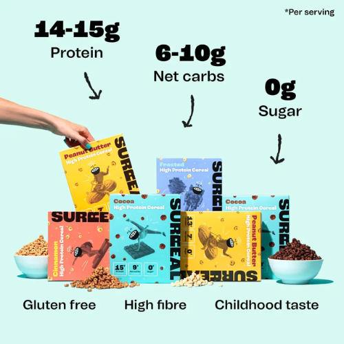 Surreal brings a fresh approach to breakfast cereals by blending the nostalgic taste of childhood favorites with advanced nutritional benefits. This cereal line stands out for its ability to combine high protein, low carbs, and zero sugar, making it an excellent choice for anyone looking to enhance their diet without sacrificing flavor. Each bowl of Surreal cereal delivers 12-13 grams of plant-based protein, ensuring that it supports muscle growth and repair while keeping you full longer.